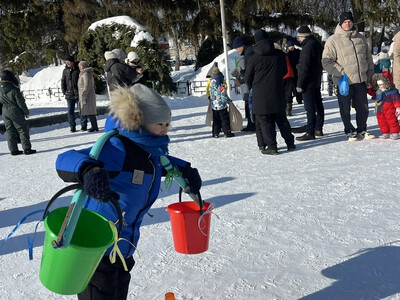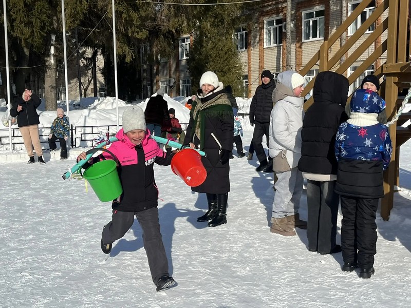 Дети проявляли скорость и ловкость, чтобы пробежать с коромыслом и ведрами, не уронив снежки из них.