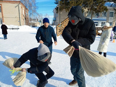 Центр творчества и спорта предложил бой мешками. В этом шуточном бою принимали участие взрослые и дети.